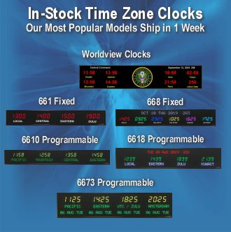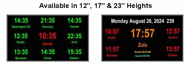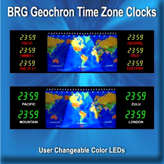BRG's Alpha Digital LED Time Zone Clocks, World Clock, Zulu Clock