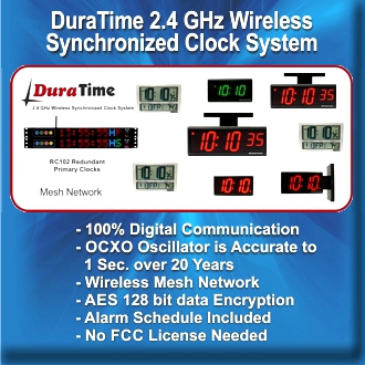 BRG's DuraTime HP High Precision Factory Synchronized Clocks featuring OCXO Oscillators for accuracy to 20 years