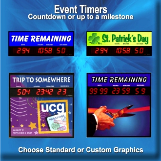 BRG’s digital clocks are available as stand alone models or can be part of a synchronized time system. Our event timers and safety timers are used by corporations and industry to mark significant milestones and to remind employees that safety is important.