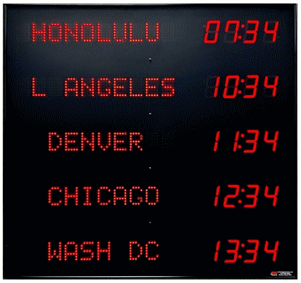 The 3420 series LED digital world time zone clocks have bar-segment LED time