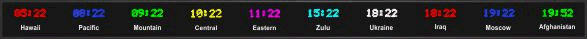 time zone clocks have 5 character dot matrix LED displays that alternate between
