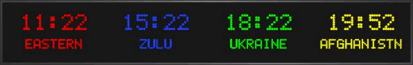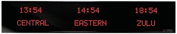 clocks have 5 character dot matrix LED time displays with a ten character dot