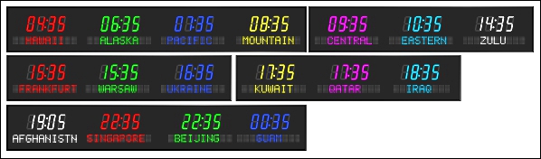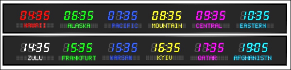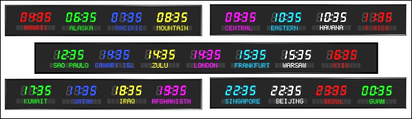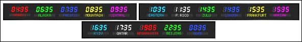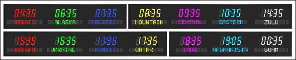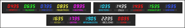 BRG Time Zone Clocks are accurate for life without the need for manual or external time updates. A GUI touch screen IR remote control is available to ease configuration. BRG's 6610 series allows you to change the color of any zone or zones with ease.