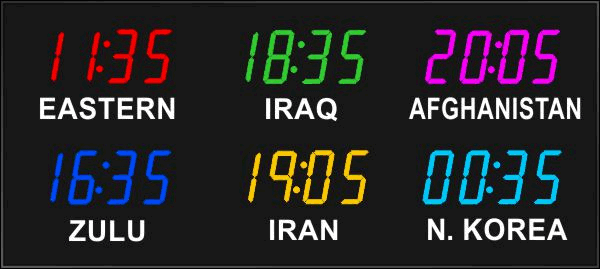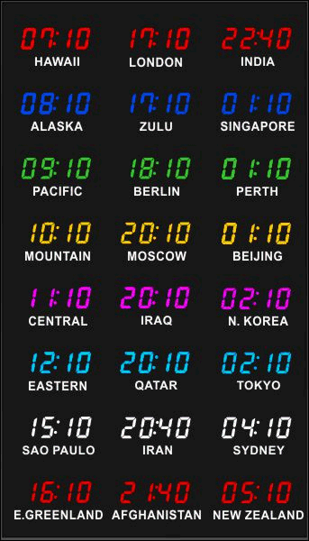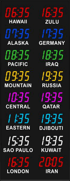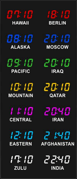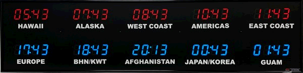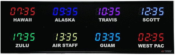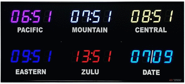 Even though our fixed zone time zone clocks come with an IR remote control to change LED zone color and brightness, BRG offers the Time Commander Option.