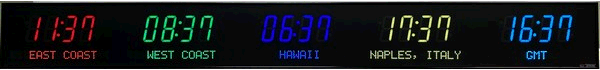 bar-segment LED time displays with fifteen character dot matrix digital zone labels