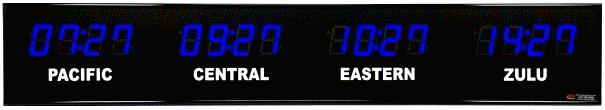 BRG maintains an inventory of in stock time zone clocks. These are our best selling units. We currently have select models of the 661, 668, 6610, 6618 and 6673 styles ready to ship to you. All we need is the time zones you want to display and the LED colors you would like programmed. These unit will ship to you in 1 week. Quantities were updated on: 01-30-2025 (Quantities Updated on Monday and Thursday) Style 661 - Fixed Zone Time Zone Clock |