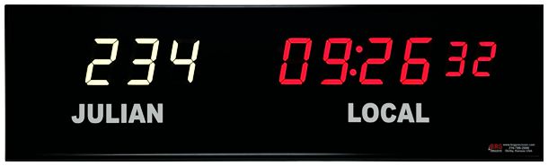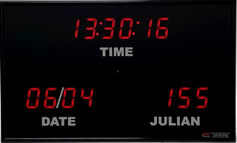 You can display more than just time on BRG time zone displays - For clocks with bar segment digits, any zone can be configured to display the Julian Day/Date, Sunrise time, Sunset time, temperature, configurable fixed numbers and more.  Additionally, clocks using matrix characters for time or location label, you can also display the Military shipping code and Air Tasking Order (ATO).