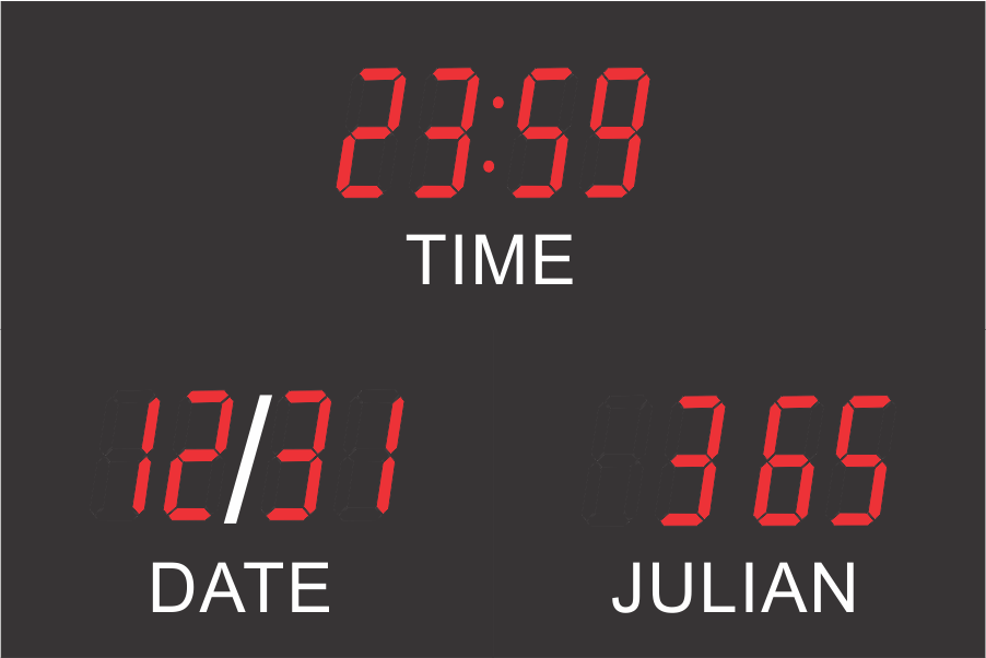These Julian calendar clocks are available in 1.8", 2.5", 4.0" & 8.0" LED heights.