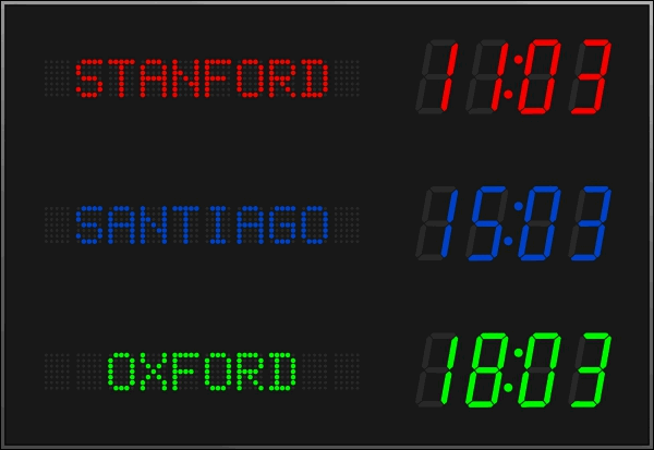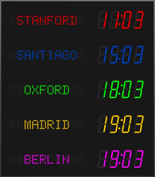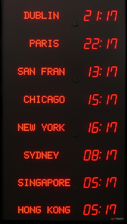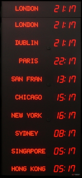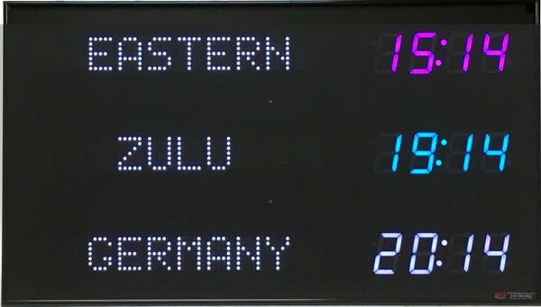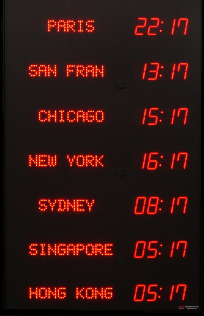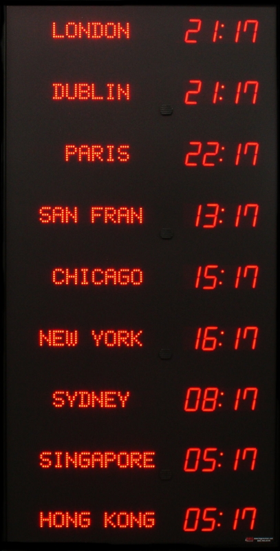 The 3420 series LED digital world time zone clocks have bar-segment LED time