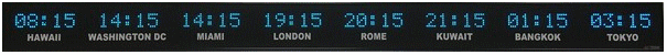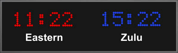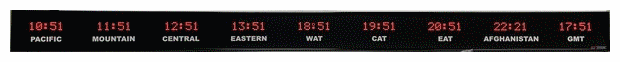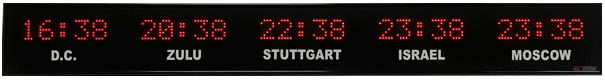 time zone clocks have 5 character dot matrix LED displays that alternate between