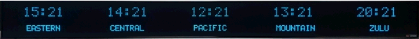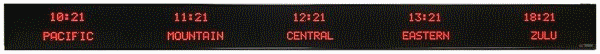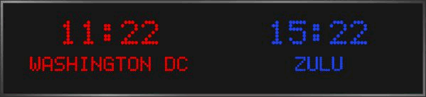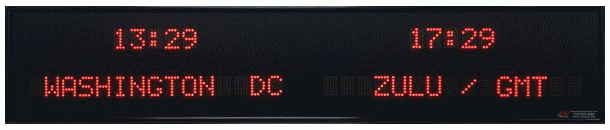 clocks have 5 character dot matrix LED time displays with a fifteen character
