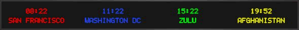 - Sunrise and/or Sunset Time (alpha and/or numeric