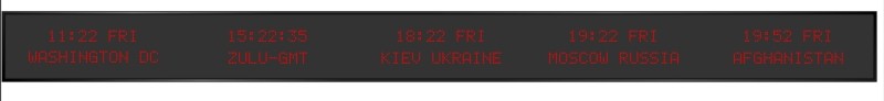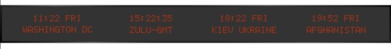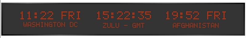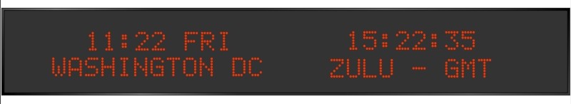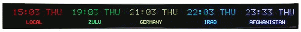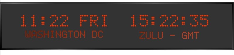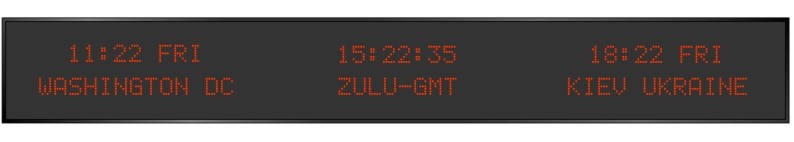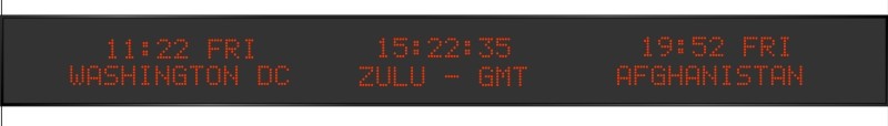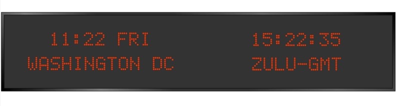 time zone clocks have 10 character dot matrix LED time displays with a 15