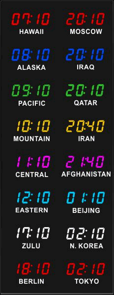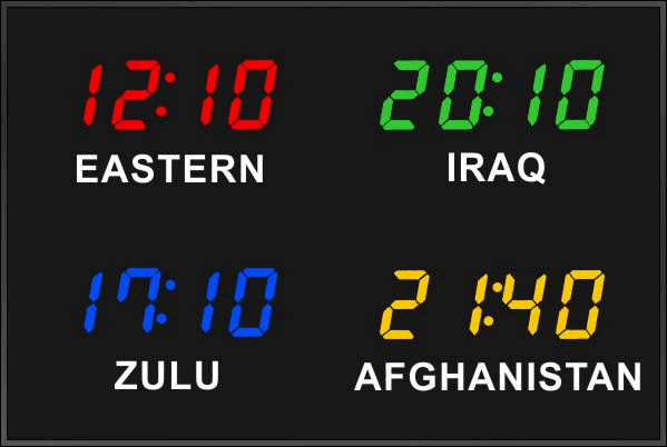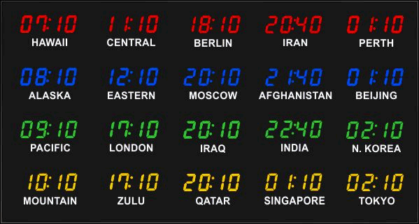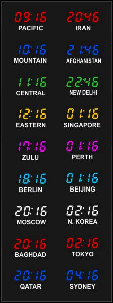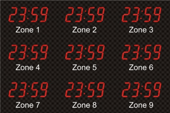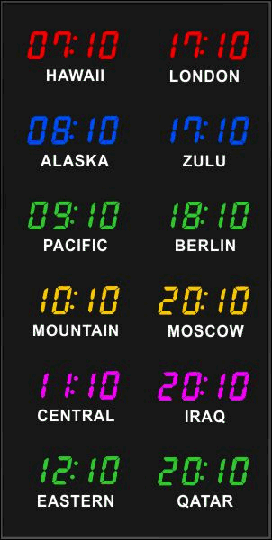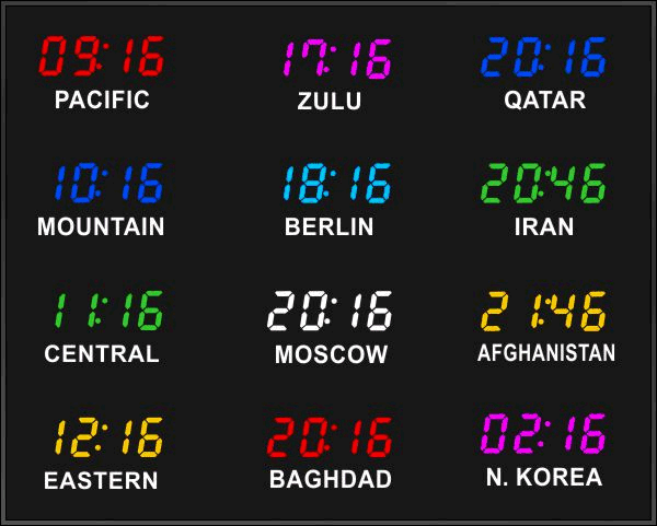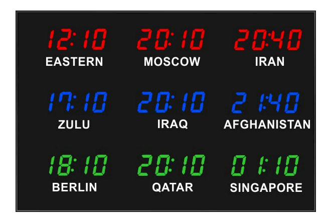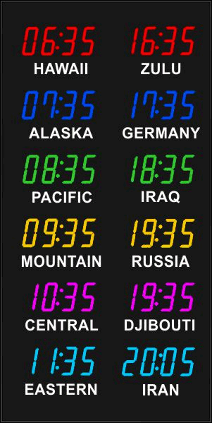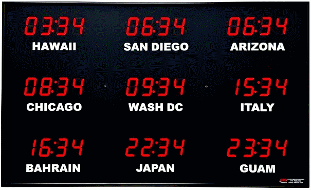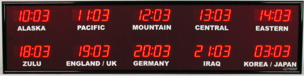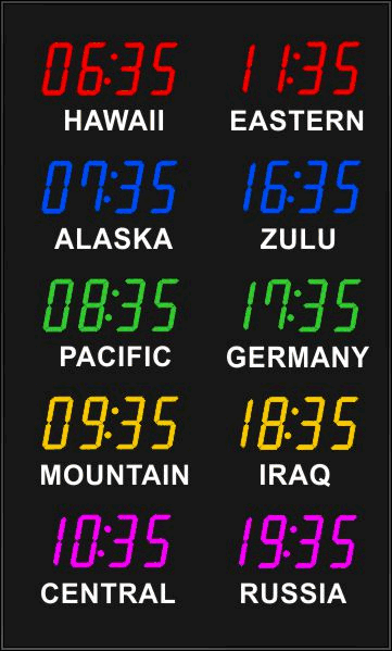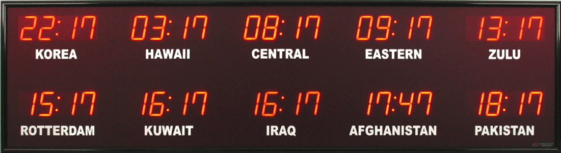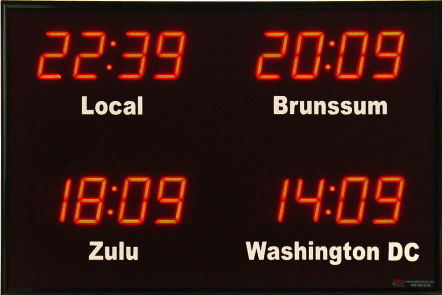 Even though our fixed zone time zone clocks come with an IR remote control to change LED zone color and brightness, BRG offers the Time Commander Option.