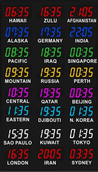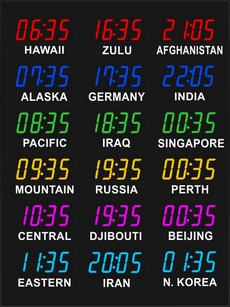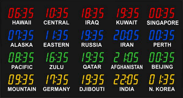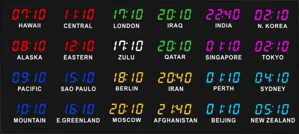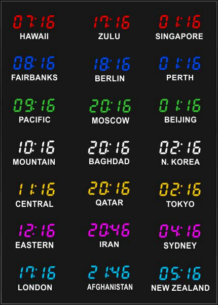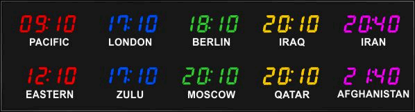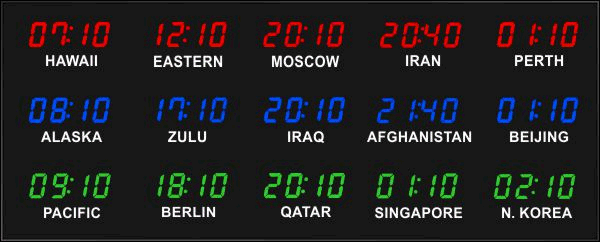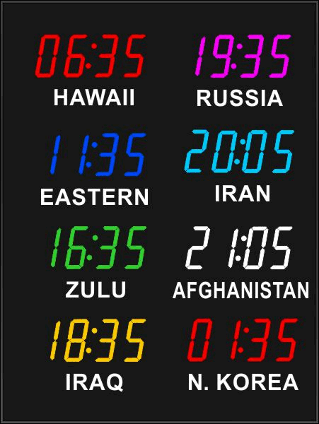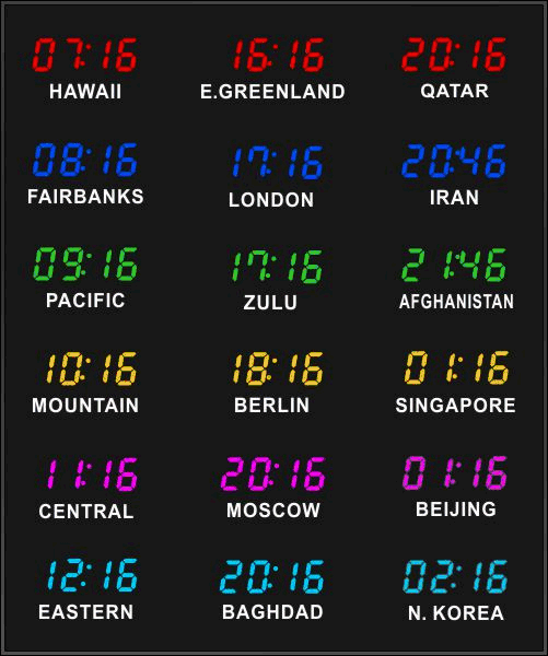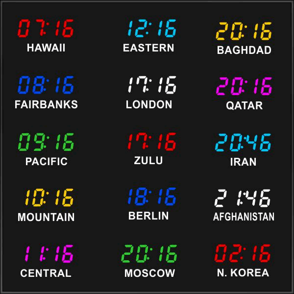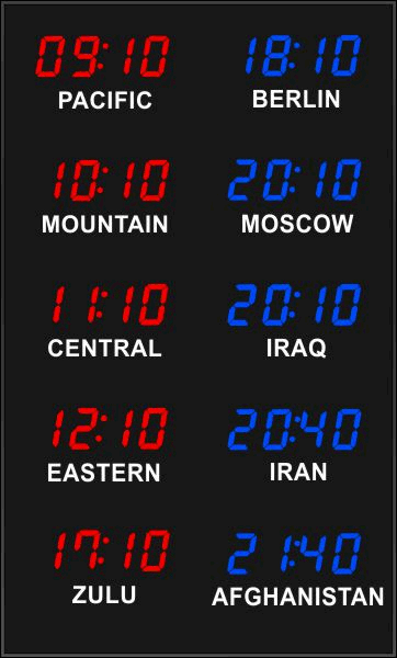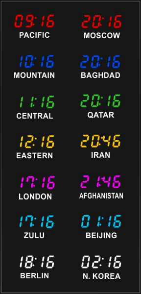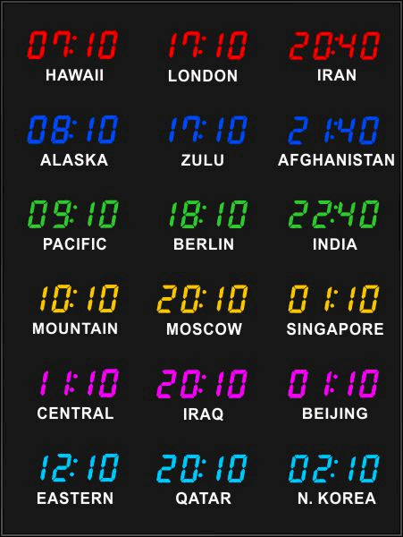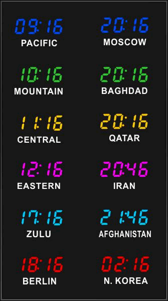 Even though our fixed zone time zone clocks come with an IR remote control to change LED zone color and brightness, BRG offers the Time Commander Option.