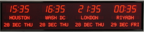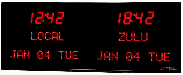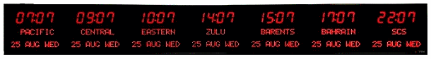 | 6673R | 8 Zone Clock with 2.5 " red bar segment LEDs for the Time and green 1.2" dot matrix LEDs for the date & zone labels |