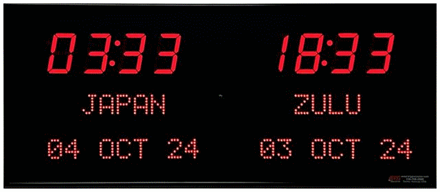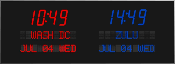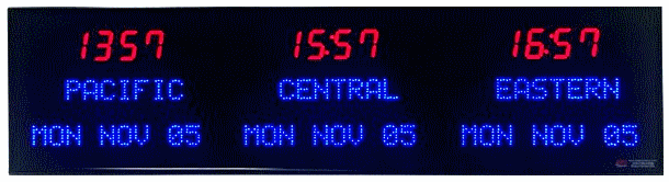 | 6673J | 3 Zone Clock with 4.0" blue bar segment LEDs for the Time and 1.2" red dot matrix LEDs for the date & zone labels | |
