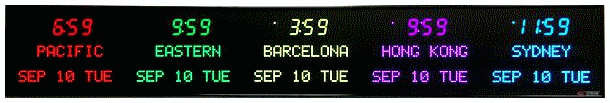 | 6673D | 5 Zone Clock with 1.8" blue bar segment LEDs for the Time and 1.2" yellow dot matrix LEDs for the date & zone labels | |