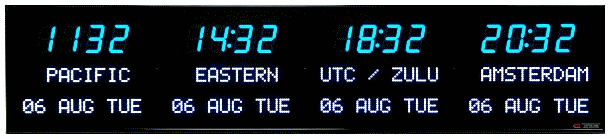 | 6673C | 4 Zone Clock with 1.8" blue bar segment LEDs for the Time and 1.2" yellow dot matrix LEDs for the date & zone labels | |