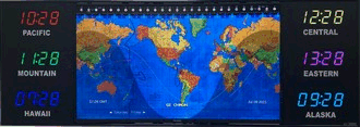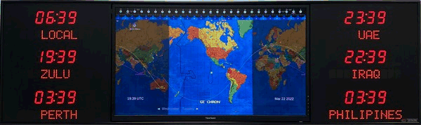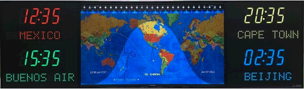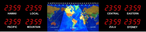BRG Geochron Moving Map Time Zone Clocks are accurate for life without the need for manual or external time updates. A GUI touch screen IR remote control is available to ease configuration.