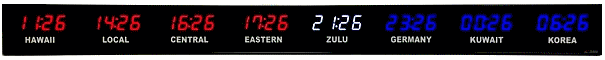 BRG maintains an inventory of in stock time zone clocks. These are our best selling units. We currently have select models of the 661, 668, 6610, 6618 and 6673 styles ready to ship to you. All we need is the time zones you want to display and the LED colors you would like programmed. These unit will ship to you in 1 week. Quantities were updated on: 01-30-2025 (Quantities Updated on Monday and Thursday)