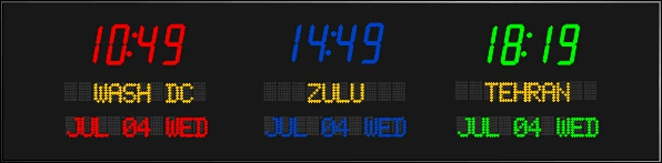 - Multi-color Bar Segment LEDs for Time (7 colors available: Red, Green, Blue, Yellow, Magenta, Cyan or White)