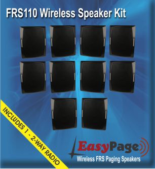 BRG manufactures wireless warehouse paging speakers that utilize the Family Radio Service (FRS) UHF frequency.